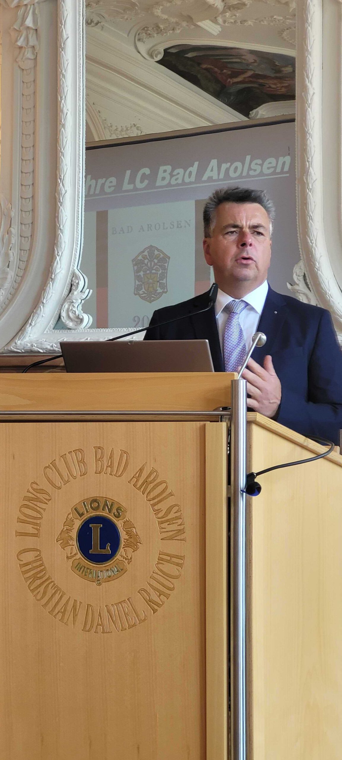 Weitere Referenten waren die früheren CRS-Absolventen wie der Virenforscher Professor Rainer Hilgenfeld, Frorsa-Chef Manfred Güllner und der frühere Baiersdorf-Chef Rolf Kunisch. Auch der frühere SPD-Bundesvorsitzende Franz Müntefering und der frühere deutsche Botschafter in Moskau, Dr. Hans-Friedrich von Ploetz, waren schon Festredner bei den Arolser Lions.