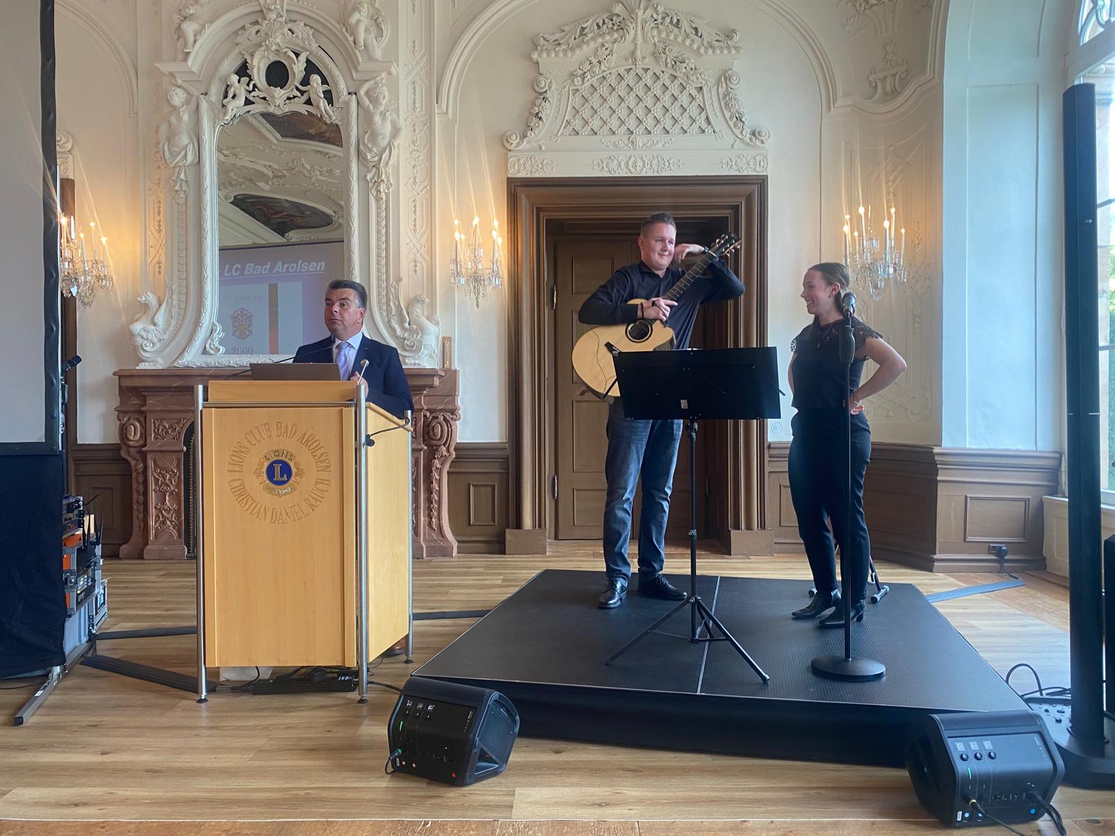 Grüße und Glückwünsche überbrachten auch Vertreter der Lions-Clubs aus Fritzlar und Wolfhagen. Musikalisch umrahmt wurde der Festakt im Residenzschloss von Henri Senft an der Gitarre und Sängerin Lena Steinbach.